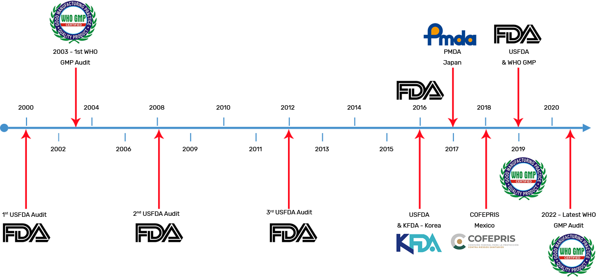 We believe that the key to strengthening the foundation of a responsible brand lies in achieving high standards of quality. Our robust Quality Management Systems (QMS) are embedded in every stage of our operations to ensure, we consistently deliver products that exceed the expectations of regulatory authorities and our customers. With a comprehensive approach in our QMS, we are committed to implement strict quality controls that undergo persistent continuous upgradation of equipment, adoption of technological advances and implementation of industry benchmarked practices to ensure that our products meet global cGMP standards.